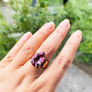 Intensely sparkly, this gorgeous rose gold Swarovski ring features an antique pink Swarovski with an inbuilt ombre effect that will have you glinting in awe.