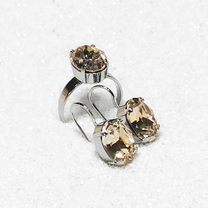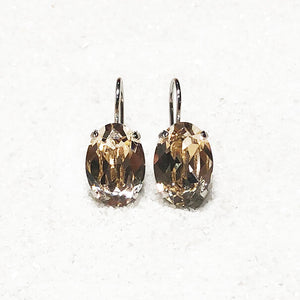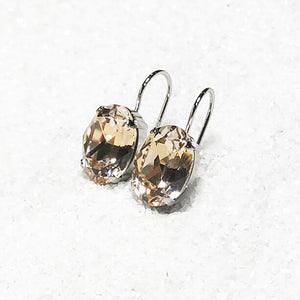 Dynamic oval Light Silk Gold Swarovski crystal set in impressive shiny silver make these drop earrings a must have statement pair.