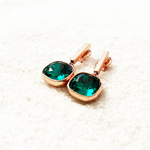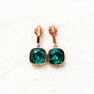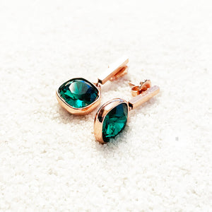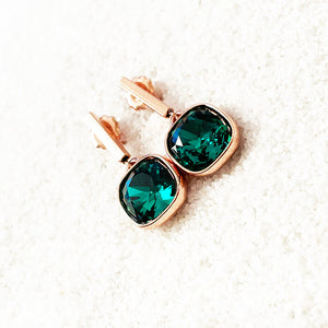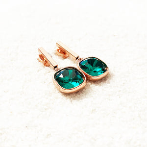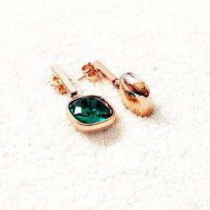 These gorgeous drop earrings are easy to transition from day to night. Emerald Swarovski paired up with a light elegant rose gold hook, makes for a classic combination.