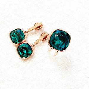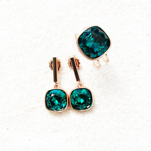 Take your elegance to the next level by matching up the earrings with the Chiara Emerald Swarovski Ring