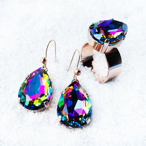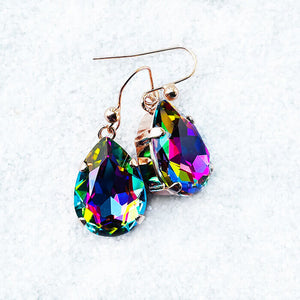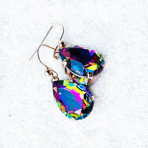 Volcano Swarovski’s accompanied by our perfect rose gold - these rainbow earrings are a bit much and always enough.