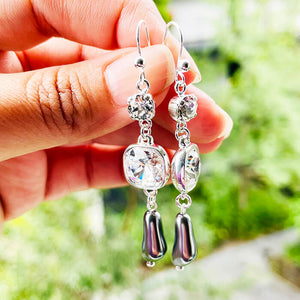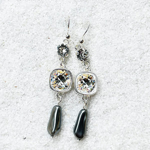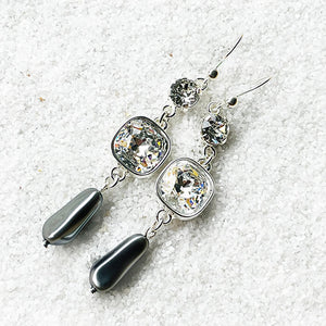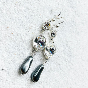 -Finish : Rhodium Silver plating / Clear Swarovski Crystal / Dark Grey Swarovski Pearl