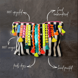 All our special edition handbags are hand painted and/or hand embroidered and will need alittle bit of TLC to keep them clean and sparkly.