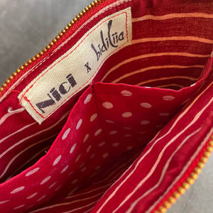 -Lining details: Printed cotton lining with two pockets 12cm x 9.25cm (wide enough to fit an iPhone 13 and/or a Samsung galaxy s10 with a smooth edged cover)