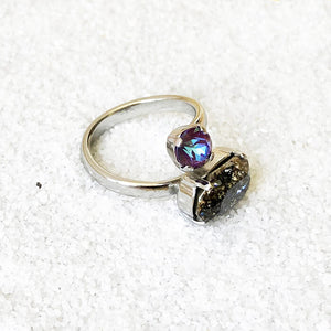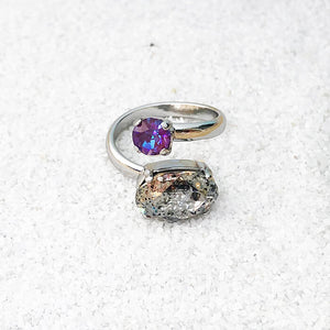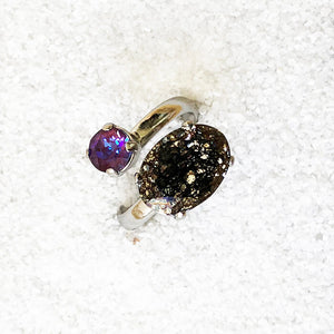 Adjustable as always this ring is easy to wear during the day and sparkle away at night. The mysterious patina lends a vintage charm to this ring