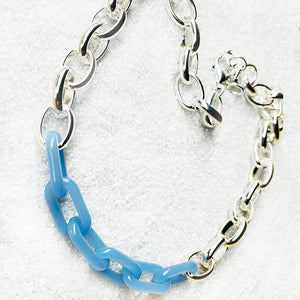 The blue links are made from naturally derived resin and can be worn centre or off centre based on your style for the day.