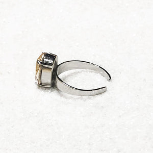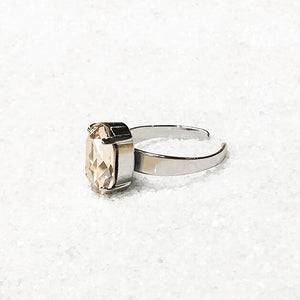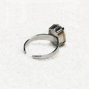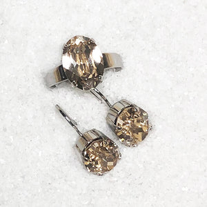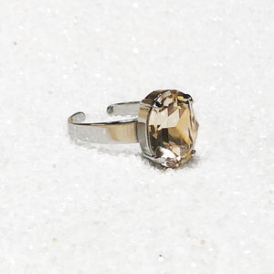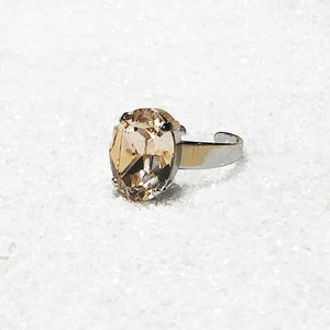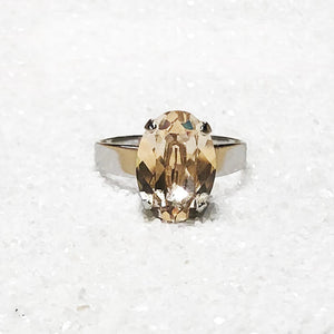 Dynamic highly charged oval Light Silk Gold Swarovski crystal set in impressive shiny silver make take this otherwise simple ring to absolute glam.