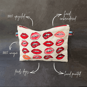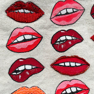 Ogle worthy statement bag with meticulously hand painted and hand embroidered lips - all with a character of their very own.