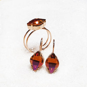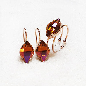 Featuring Light Silk Mahogany Swarovski in a lemon cut that has endless facets that reflect light and colour at all angles making the stone extremely sparkly
