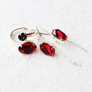 Amp up your style volume with the perfect accompaniment to these dazzling red earrings buy slipping on the Jenstar Swarovski Statement Ring.