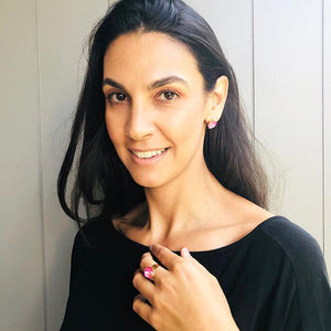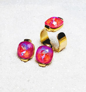 Wear these powerhouse pink crystal stud earrings on their own or turn up the volume by adding on the Lotus Glam Statement Ring.