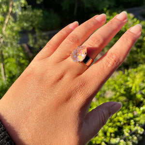Dusty Pink Swarovski in a high shine faceted pear shape set perfectly in Rose Gold goodness.