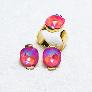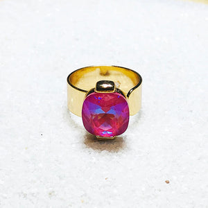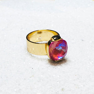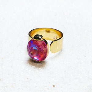 An insane mix of petite pink interlaced with spectacular iridescence, the lotus glam crystal statement ring will make you feel like a force to be reckoned with.