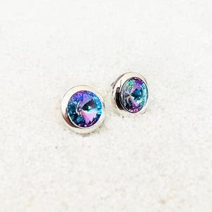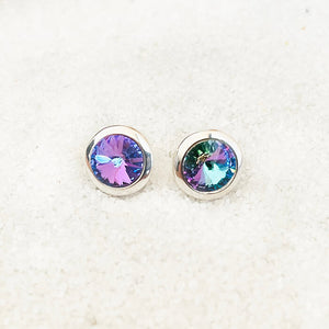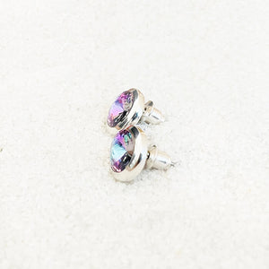 Vitrail Swarovski Crystal set in shining rhodium plated silver. These stud earrings are like a glimmering rainbow that’ll make your everyday magical.