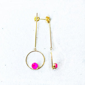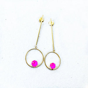 Introducing our stunning Isla gold dangle earrings, meticulously crafted to embody a disco charm with each rhythmic movement. These earrings feature captivating hot pink Swarovski crystals, infusing your ensemble with mystery and grace.