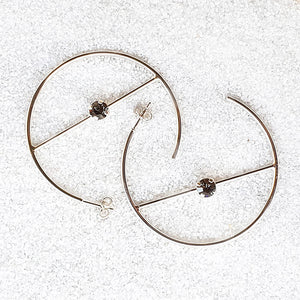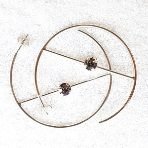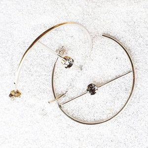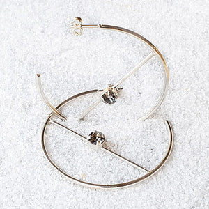 Lightweight silver hoop earrings with the sparkle of black diamond swarovski crystal.