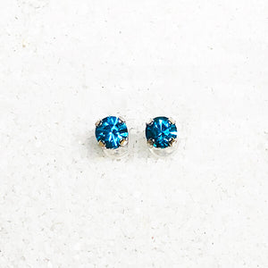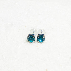 Featuring Blue Circon Swarovksi crystal set in rhodium* plated metal.
