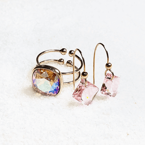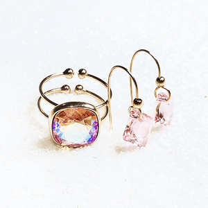 Add a little sparkle to your everyday life with this unique statement ring and to amplify the zing add the Pegasi Light Pink Crystal Earrings
