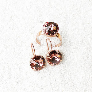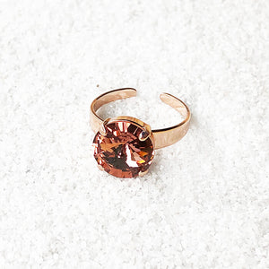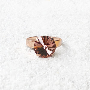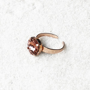 Versatile chic and warm blush rose Swarovski® crystal set in the new age goodness of the perfect rose gold make this ring the perfect add on to any outfit day or cocktail.