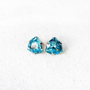 Each earring is elegantly plated in rose gold, enhancing the brilliance of the Swarovski crystals while adding a luxurious touch to your style. The unique trilliant shape of these stud earrings exudes charm and refinement, making them perfect for both special occasions and everyday wear.