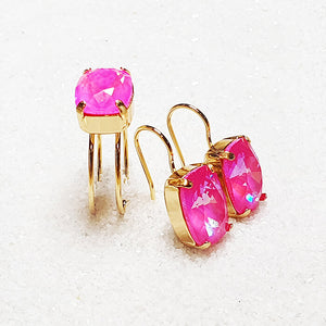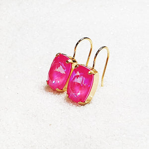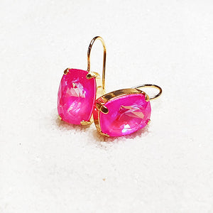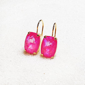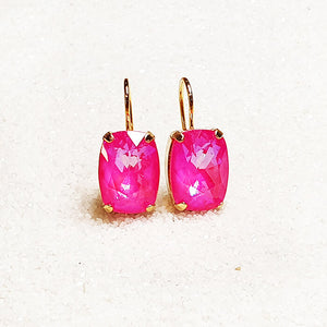 The large rectangular Flouro Pink Swarovski® Crystal captures and reflects light with intention, making them glow, sparkle and shine all at the same time.