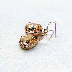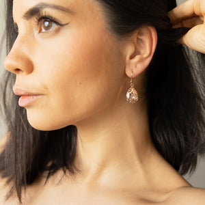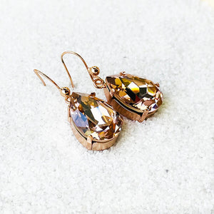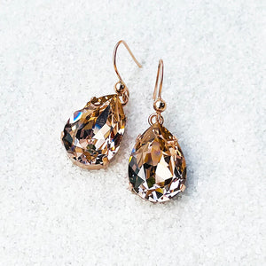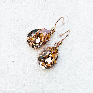 Featuring pear shaped Swarovski's in Vintage Rose set in rose gold to amplify that tone on tone spectacularness.